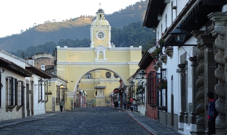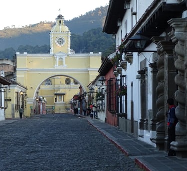 This arch is probably the most photographed scene of Antigua. Years ago, cloistered nuns occupied the buildings on both sides of the street. They were not allowed to interact with outside individuals. A passageway exists above the street through which they could pass unseen from one building to the other.